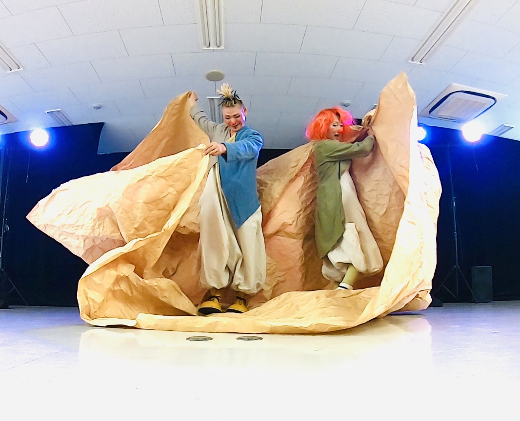 それは時には生き物に見えたり、何かに見えたり。二人の道化師による言葉なき紙あそび。終演後は舞台で使った紙を使って自由に遊べる交流タイム。赤ちゃんから大人まで紙の世界に行ってみよう。