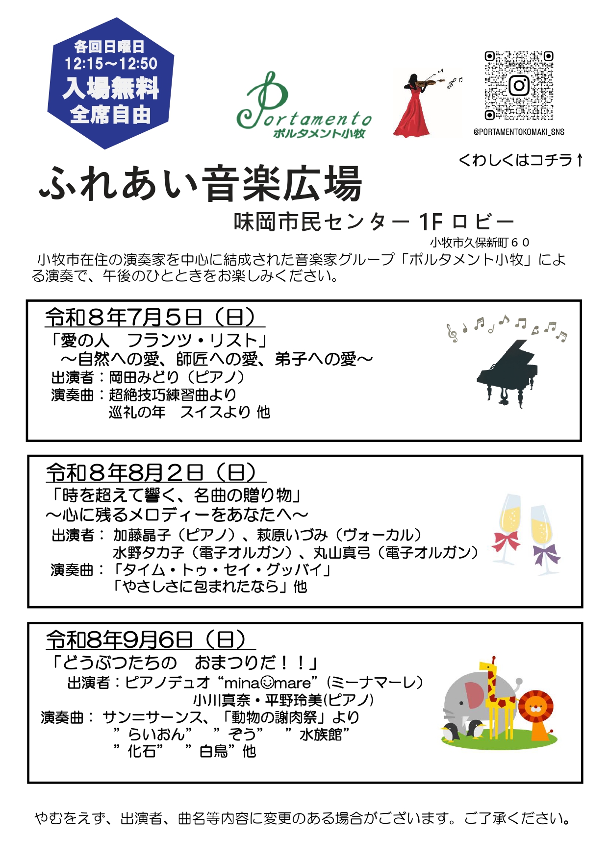 お昼のひとときをポルタメント小牧の演奏でお楽しみください♪