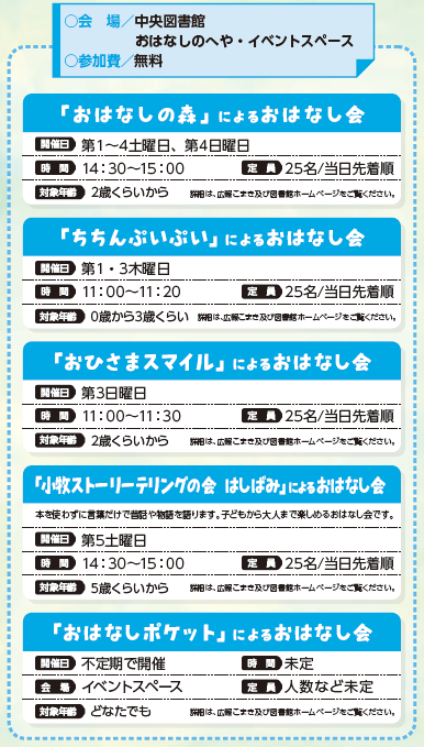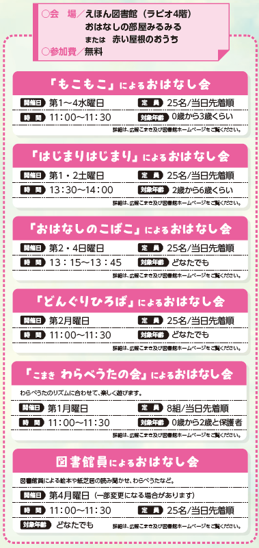 詳しくは「広報こまき」・図書館ホームページをご覧ください。
