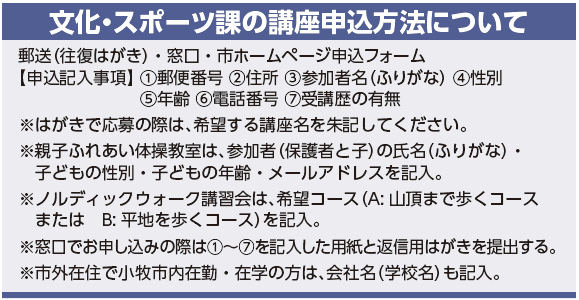申込方法:小牧市ホームページ申込フォーム又は往復はがき往復はがき