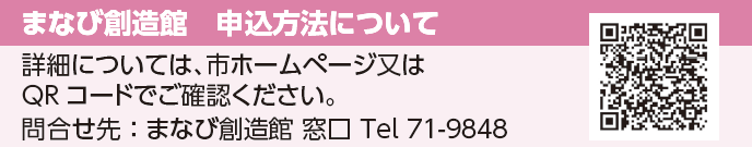 <問合せ先> まなび創造館(多世代交流プラザ)