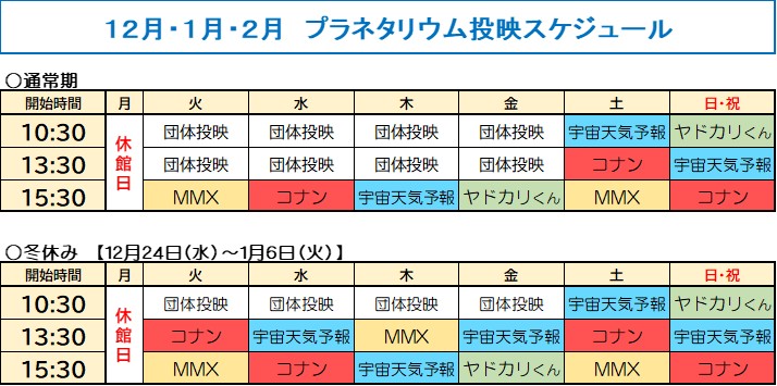 2025年12月からプラネタリウムの投映スケジュールが変わります。