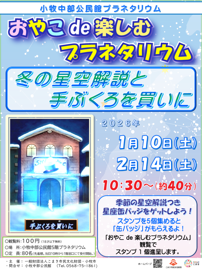 「おやこ de 楽しむ プラネタリウム」を今月も開催します。