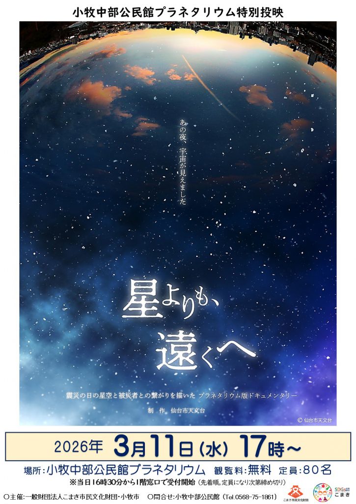 東日本大震災の日の星空と被災者たちとの繋がりを描いた仙台市天文台制作による