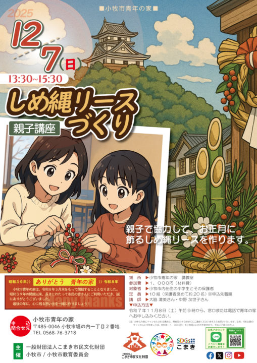 親子で協力して、お正月に飾るしめ縄リースを作ります。